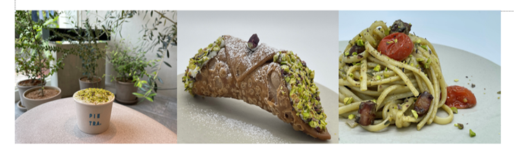 피스타치오 나무는 중동, 캘리포니아 심지어 중국에까지 널리 퍼져있지만 가장 좋은 열매를 맺는 나무는 브론테의 에트나 활화산의 언덕에 있습니다. 화산섬에서 오랜 시간 견뎌내고 자란 생명력을 그대로 지니고 있으며 비옥한 토양과 기후적 특성으로 크기는 작지만 풍부한 영양분이 농축되어 있습니다. 수 세기 동안 시칠리아 브론테에서 자라고 있는 피스타치오의 품질은 이탈리아 전역에 알려져 있으며 정부의 보호를 받고 있을 뿐 아니라 '세계적으로도 인정받는 최고급 식재료' 입니다.