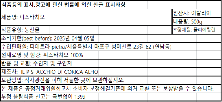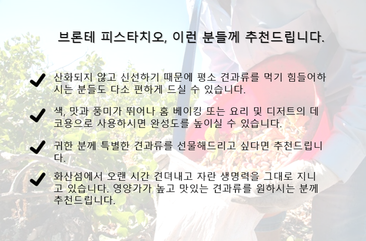 [피에트라] 국내 단독 직수입, 브론테(Bronte, Sicily)에서 수확한 신선한 피스타치오는 다릅니다.